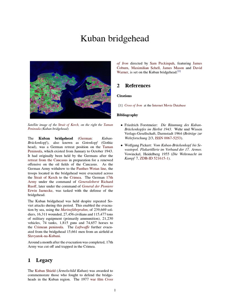View info on kuban bridgehead kuban. The kuban bridgehead german kubanbrckenkopf also known as the goths head position german gotenkopfstellung was a german position on the taman pen.